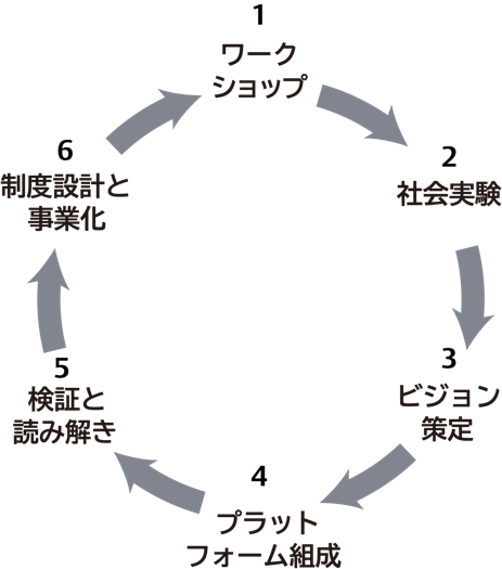 そのために、価値、共創、社会実験、デザインの4つにフォーカスします。